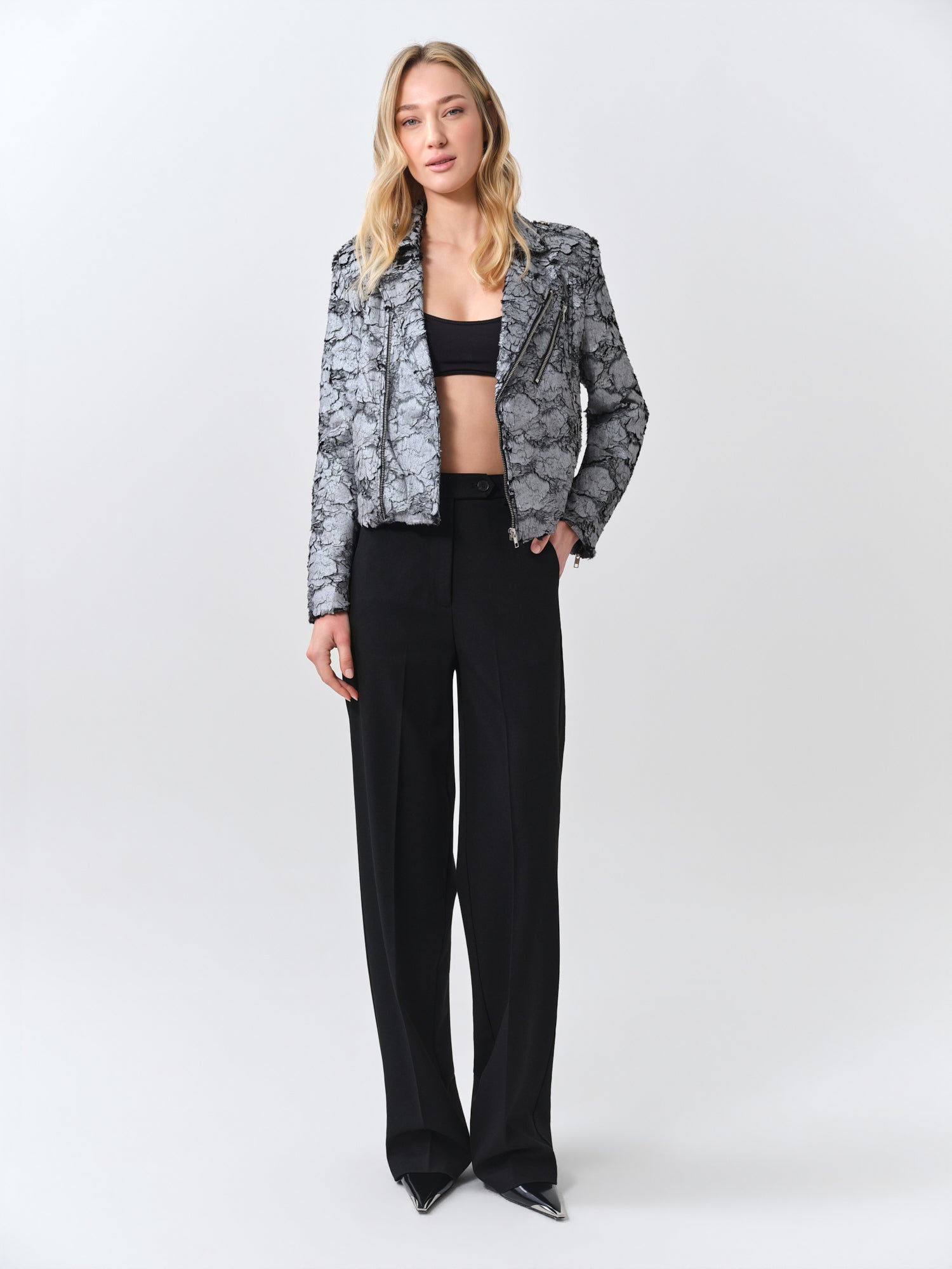 Faux Fur Silver Moto Jacket
