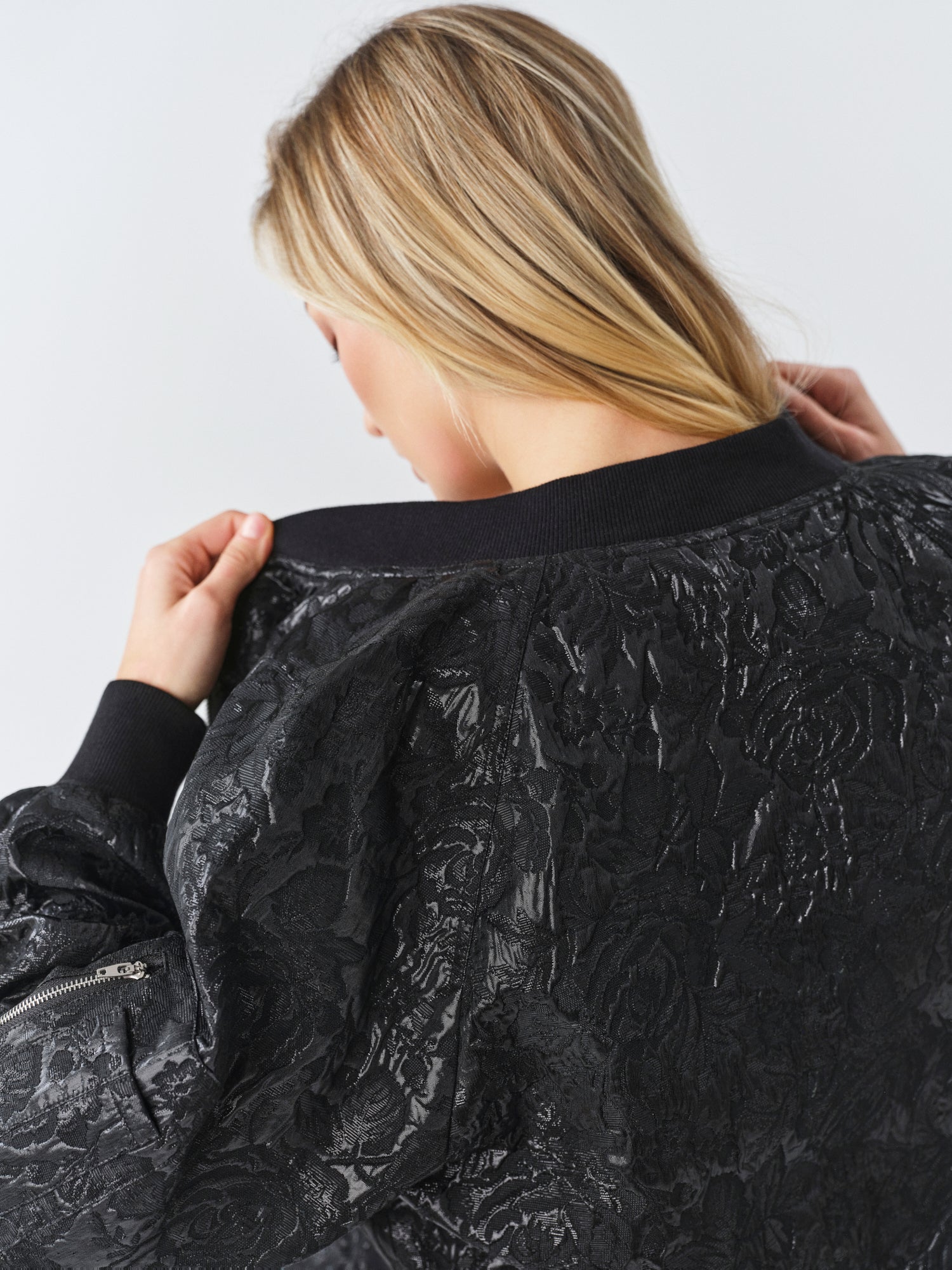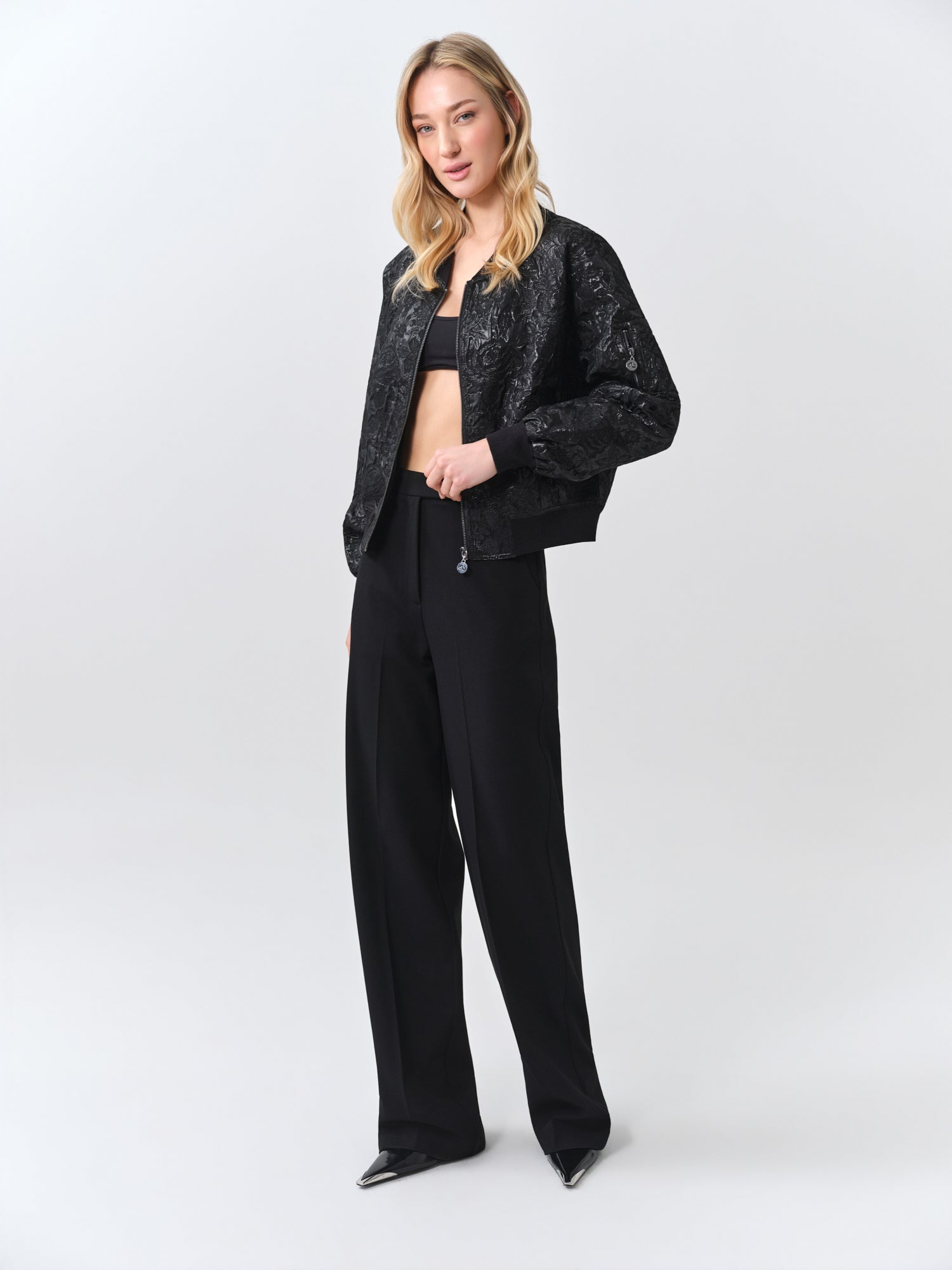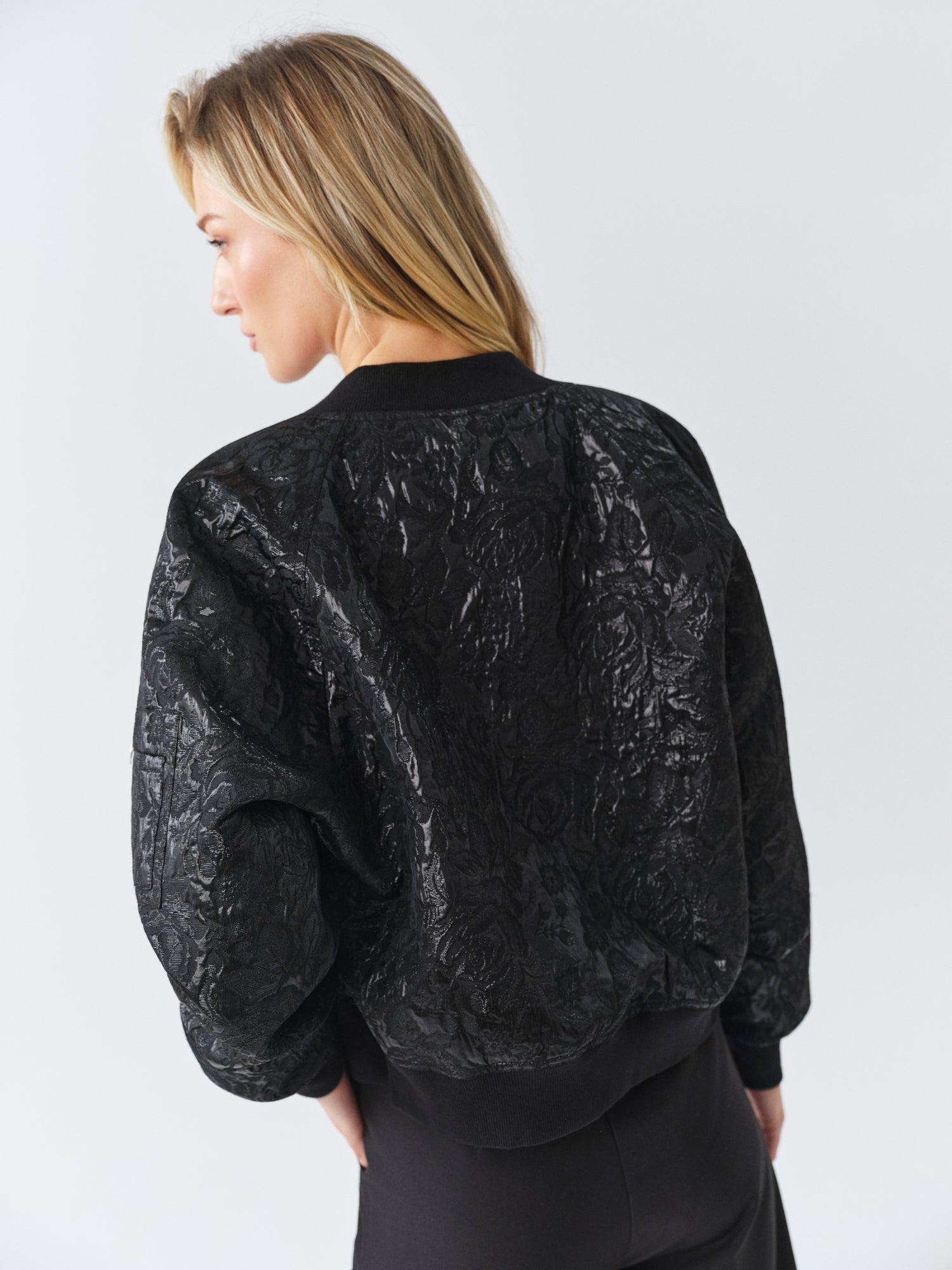 Black Shiny Bomber Jacket