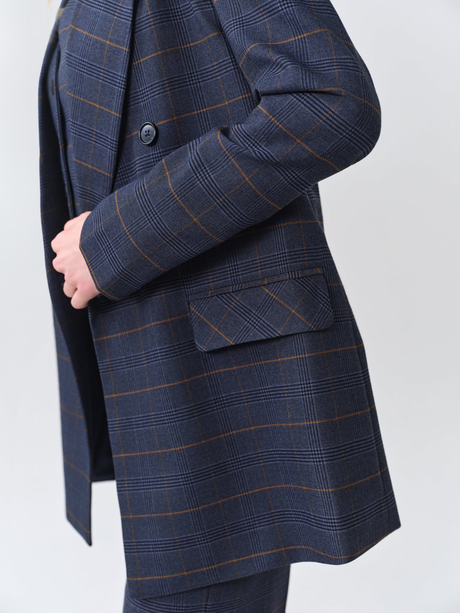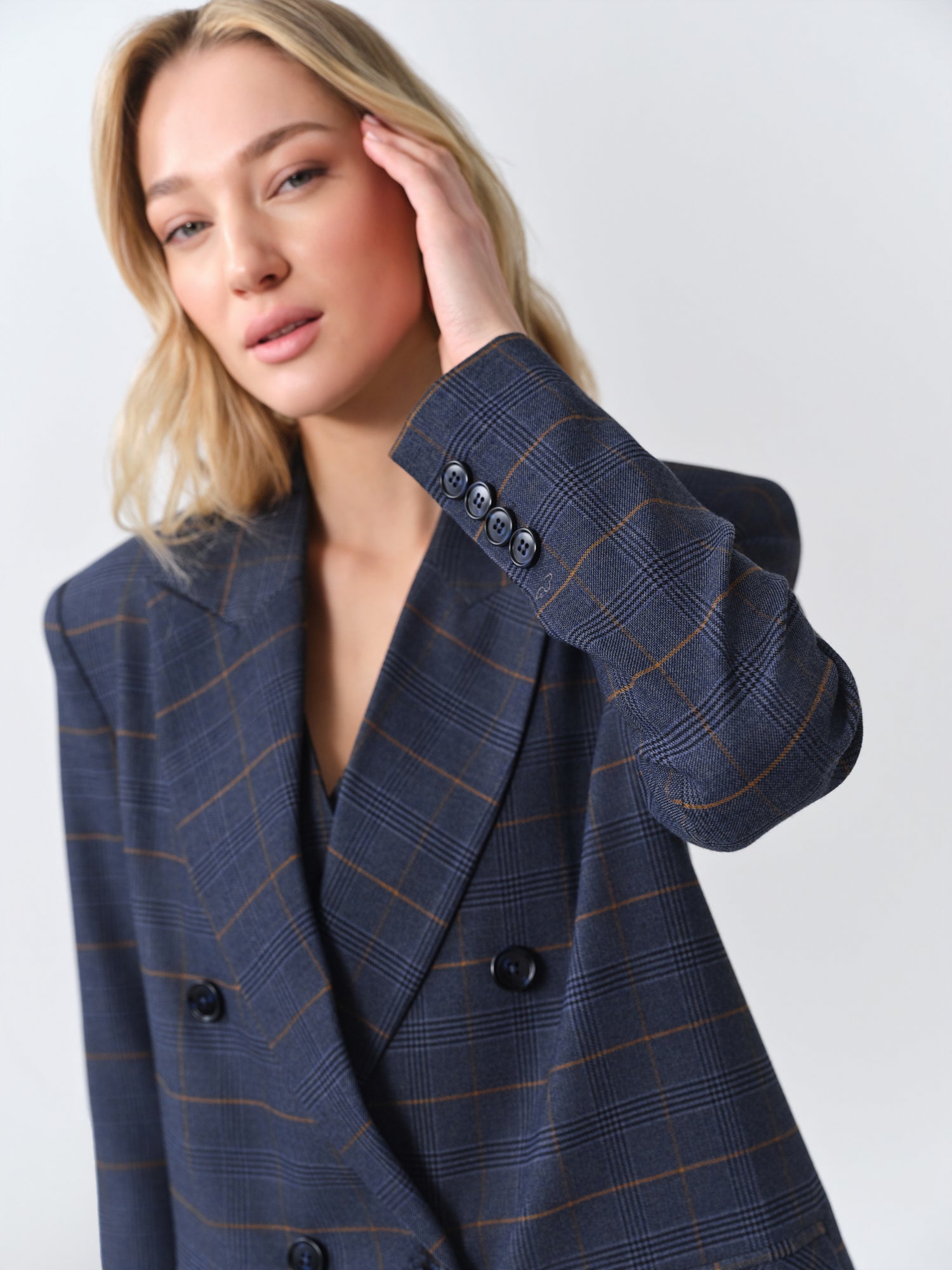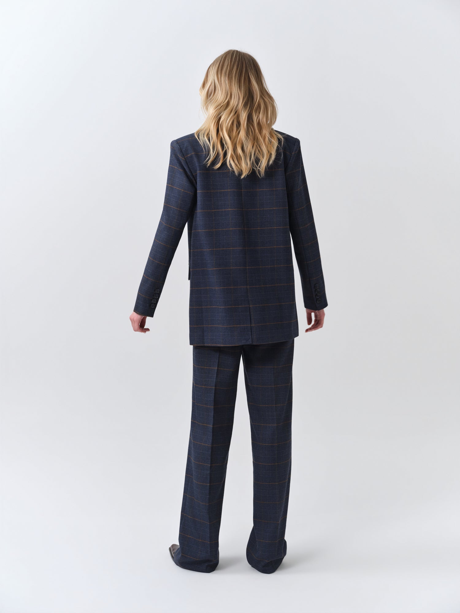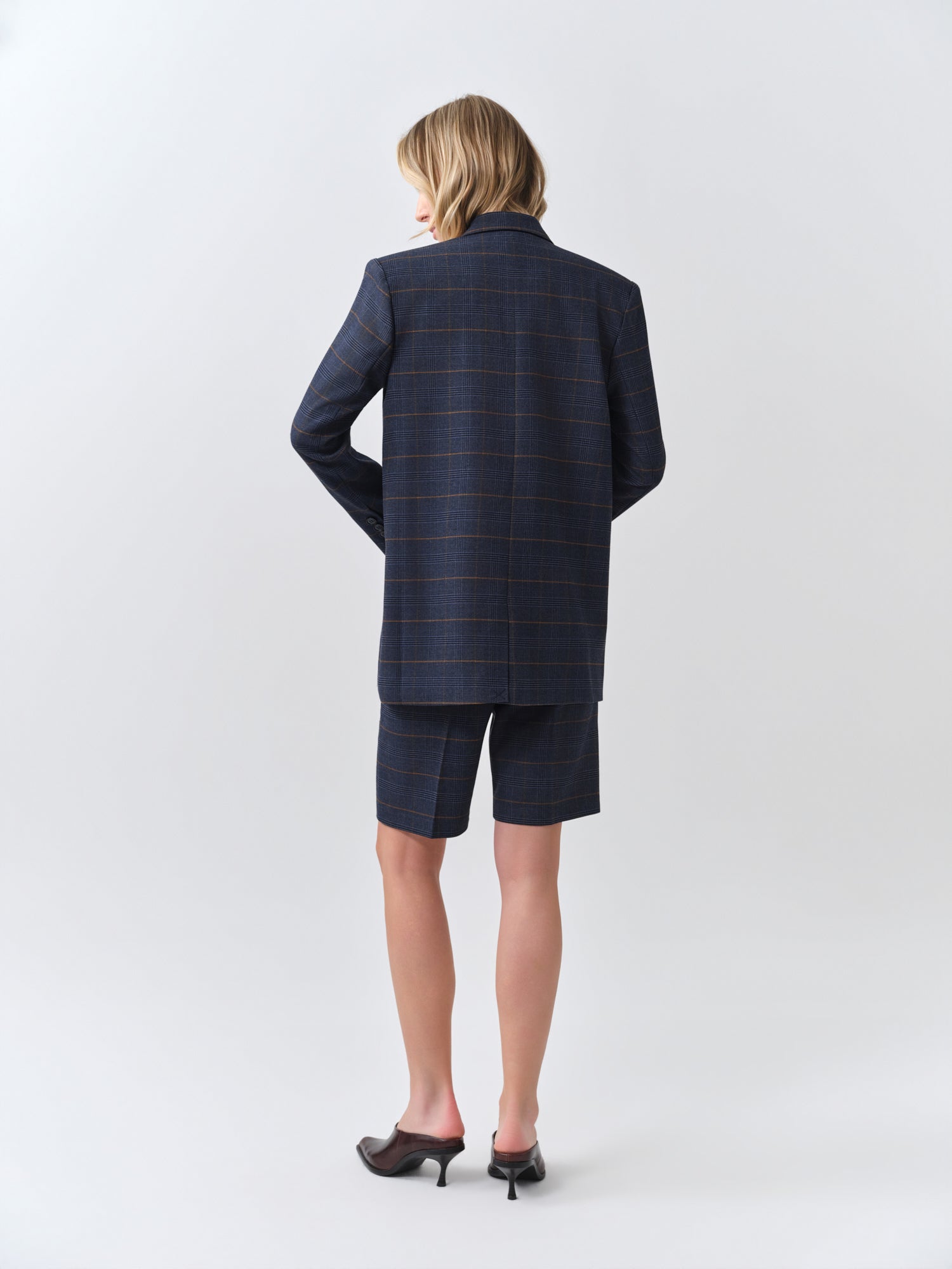 Navy Checked Oversized Blazer