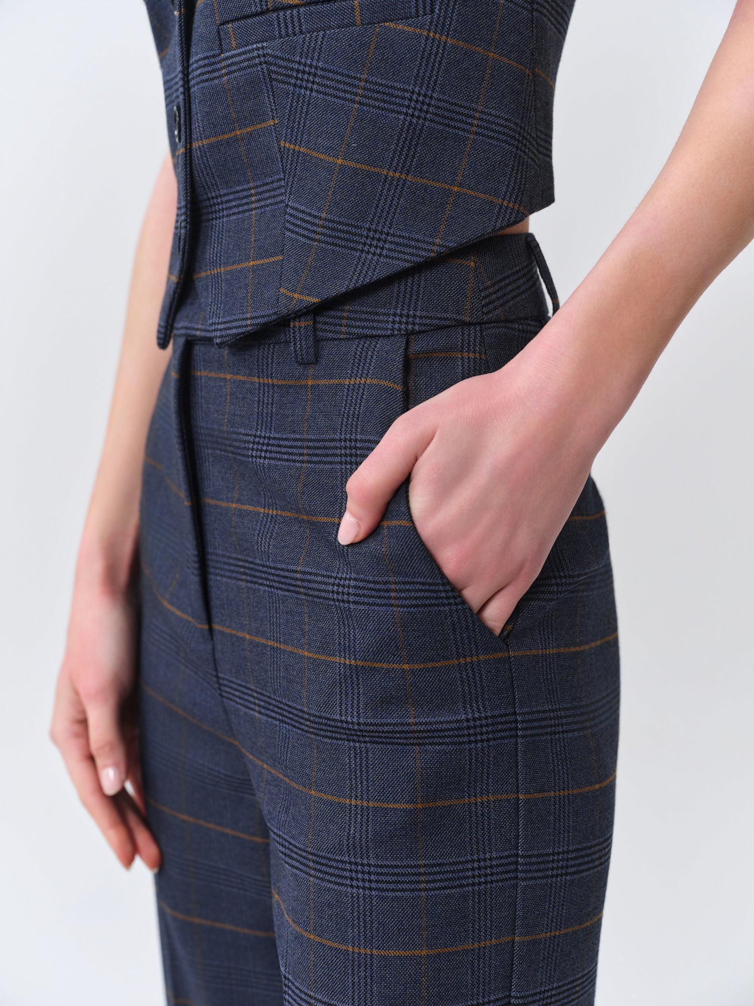 Navy Checked Pant