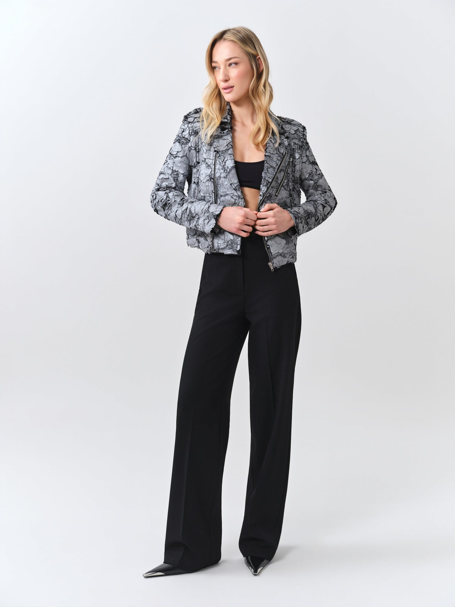 Faux Fur Silver Moto Jacket