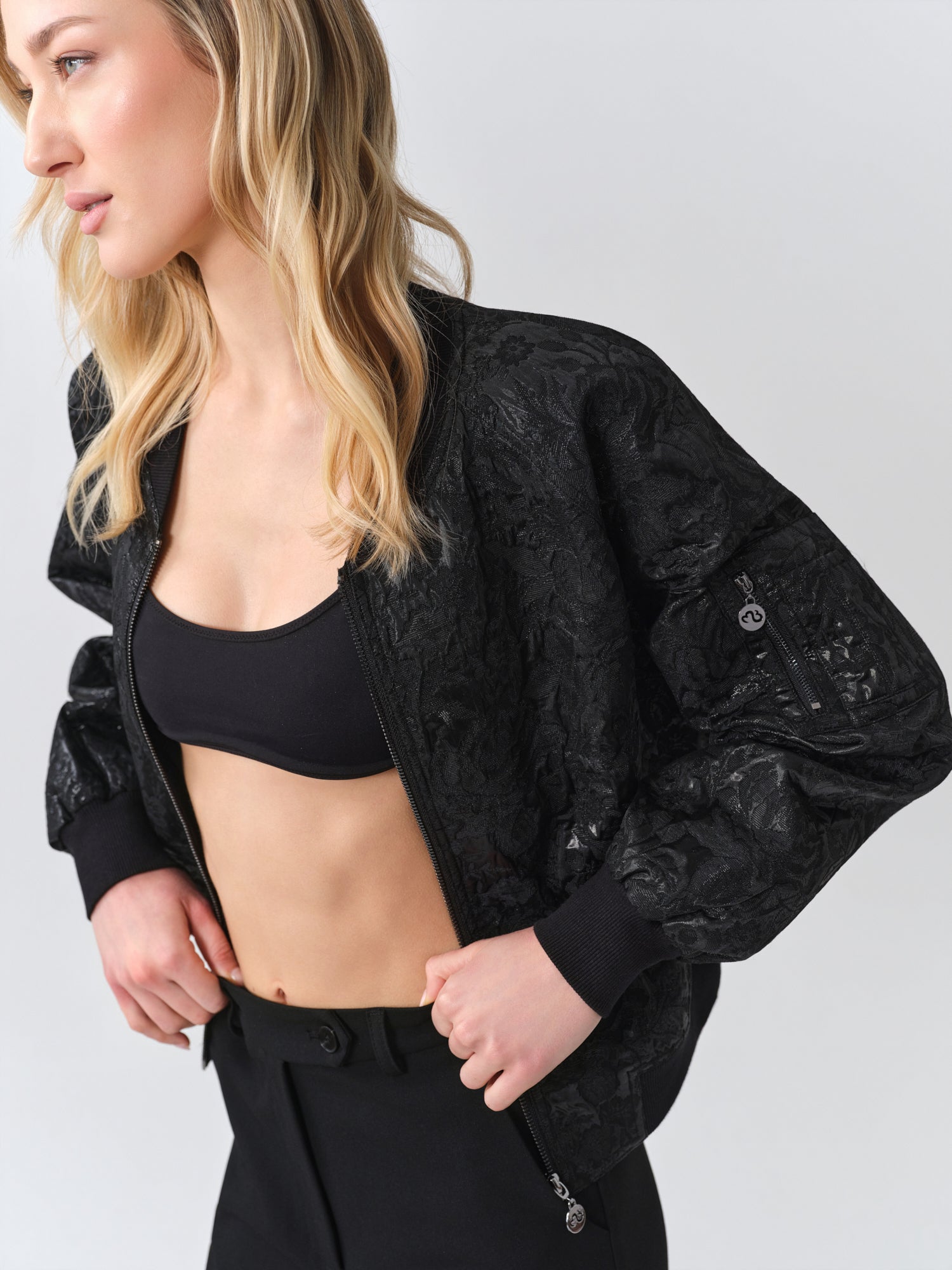 Black Shiny Bomber Jacket