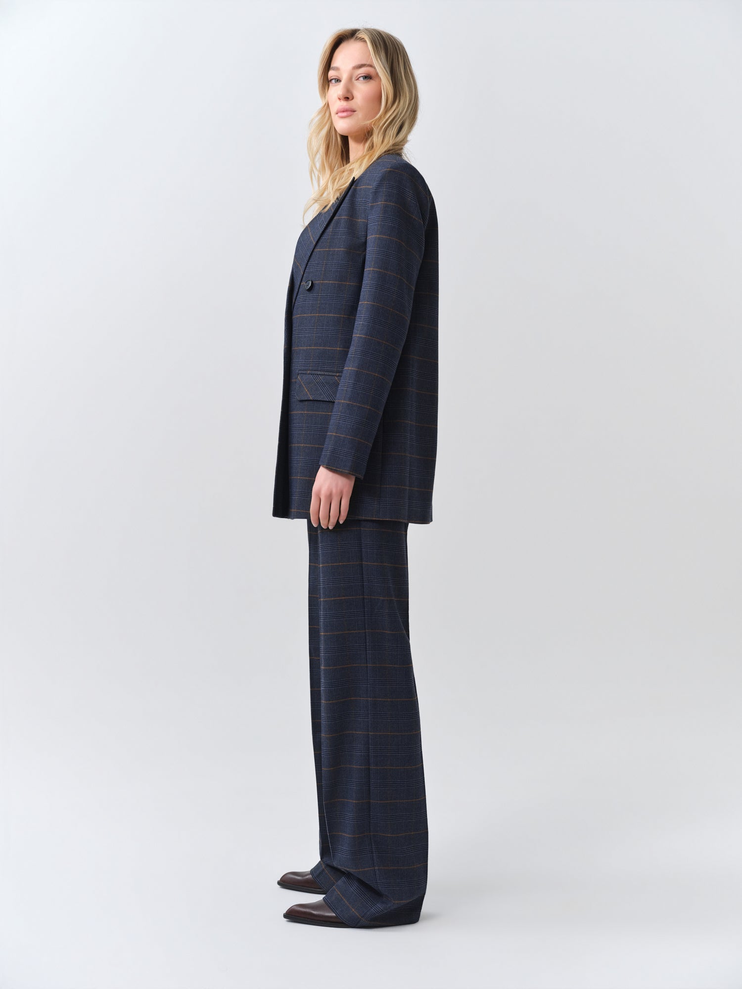 Navy Checked Oversized Blazer