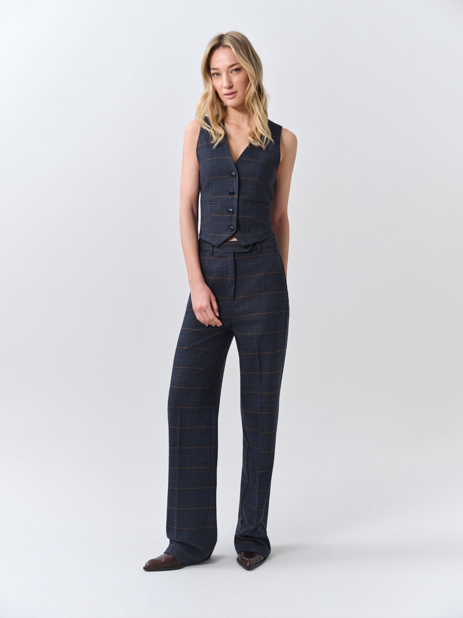 Navy Checked Vest