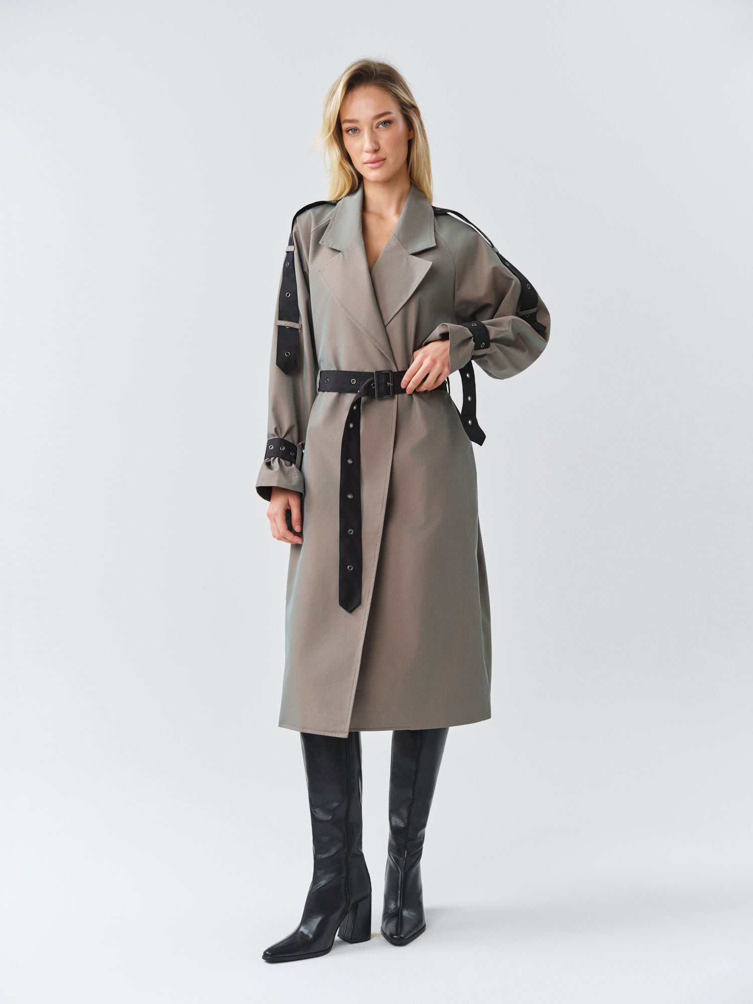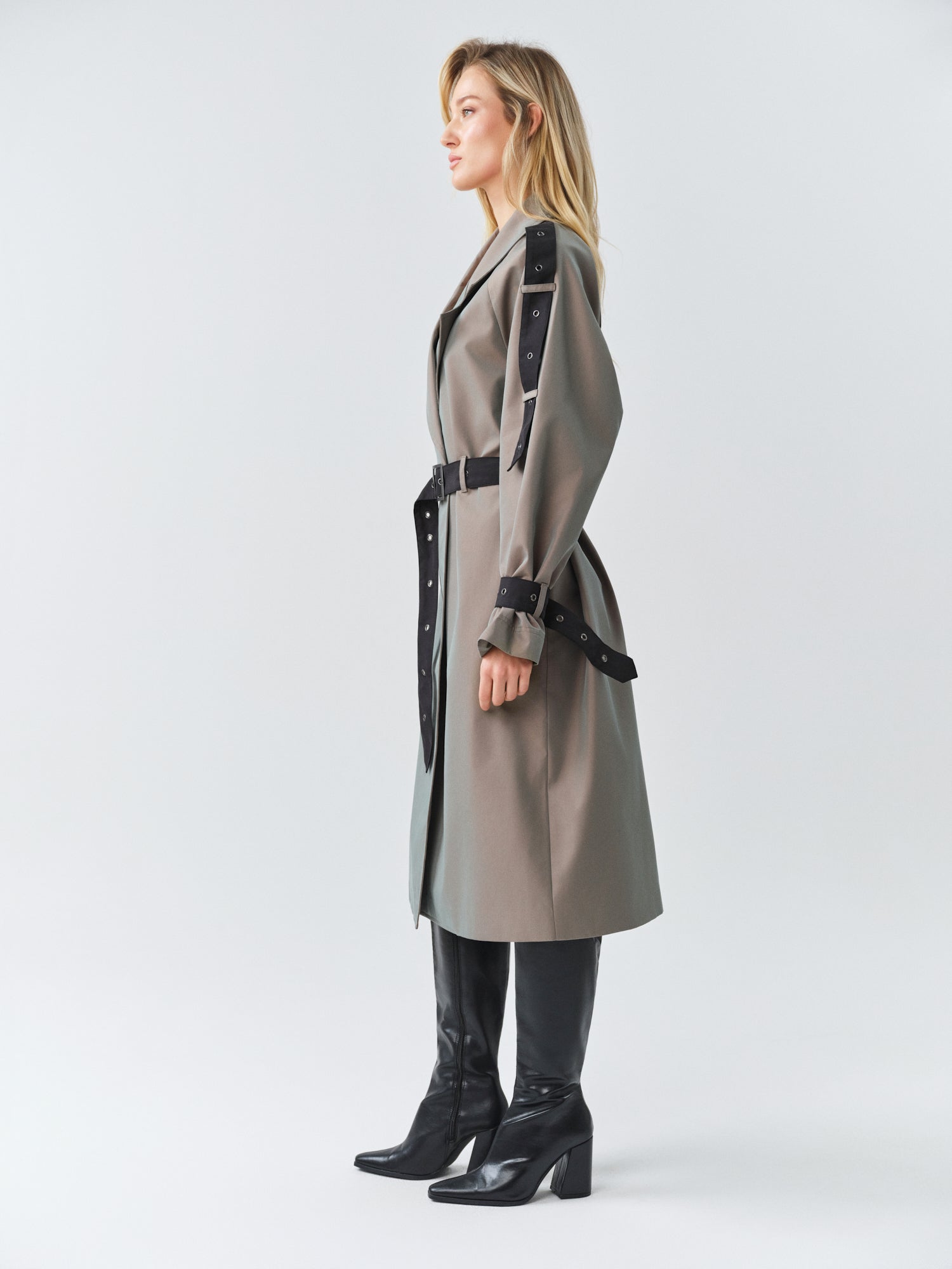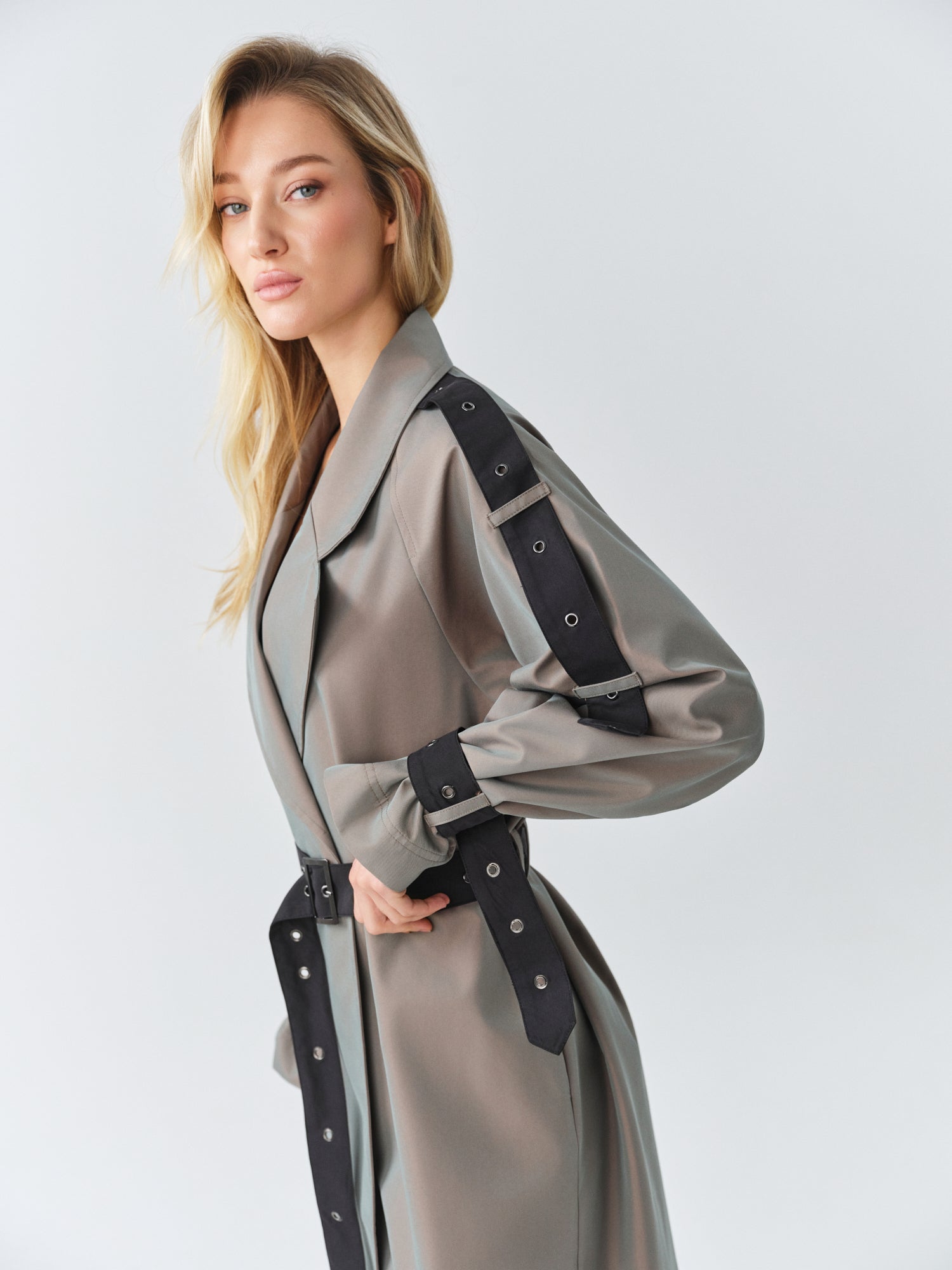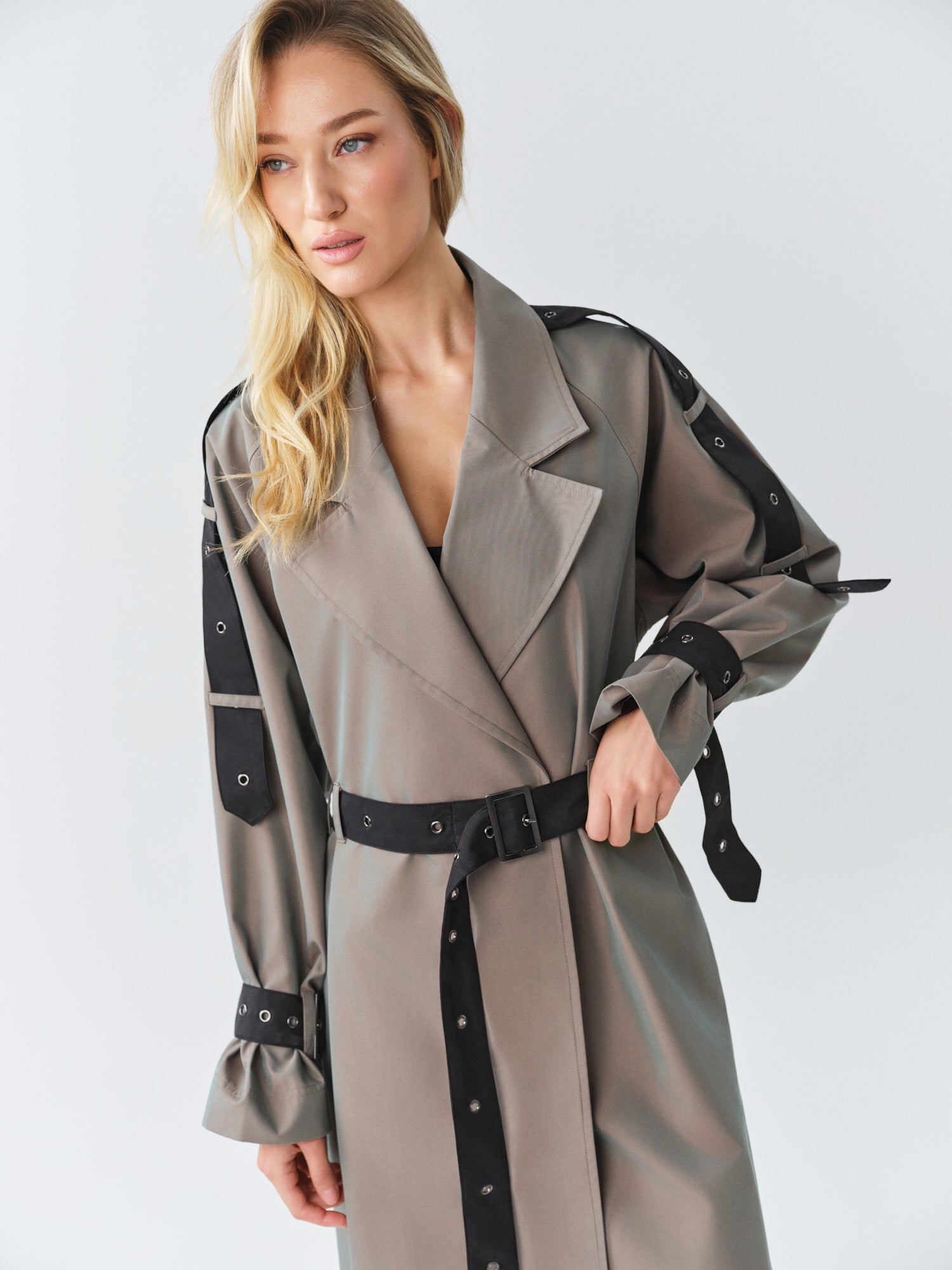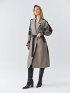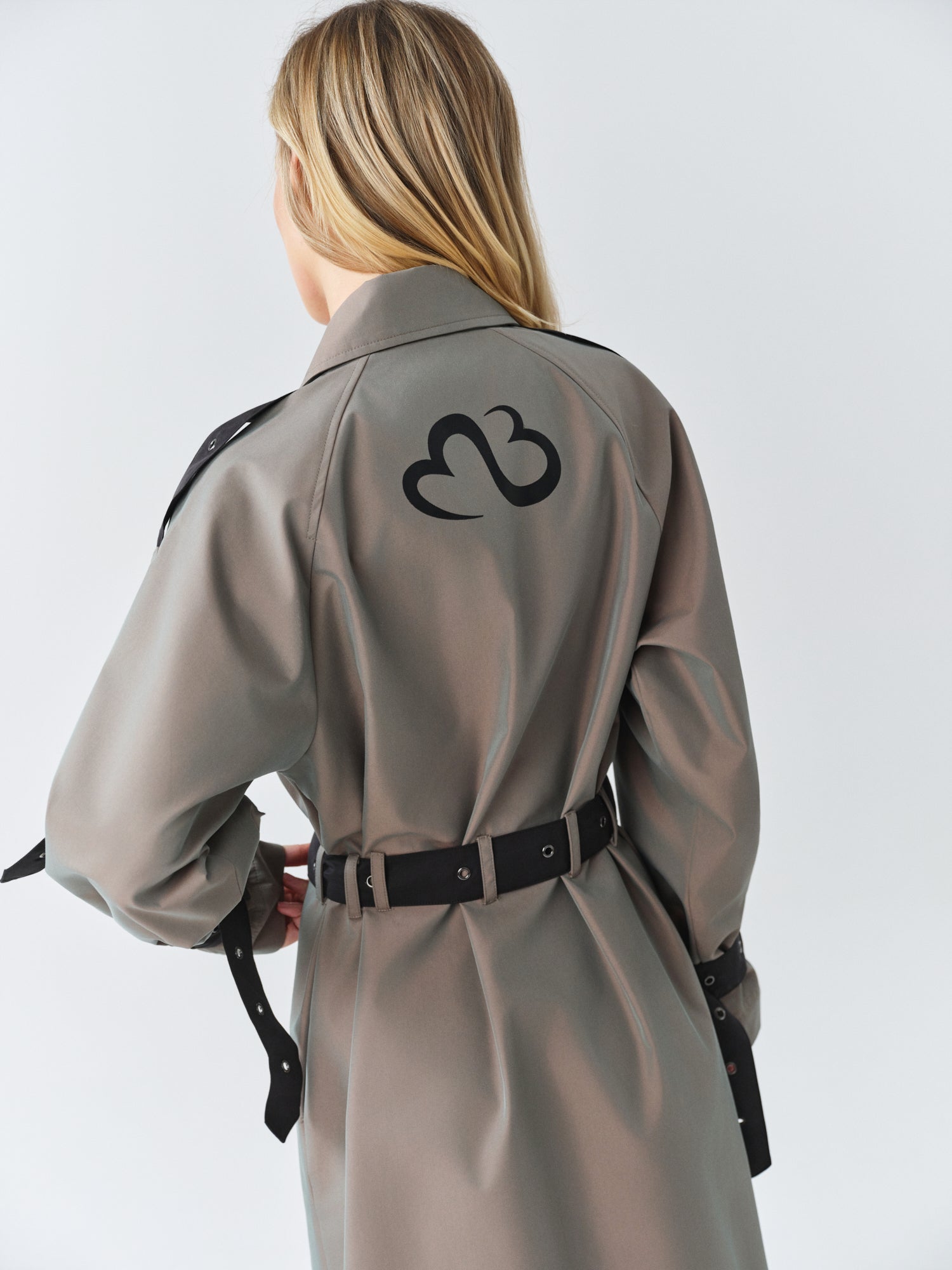 - Long oversized 2 color trenchcoat with logo