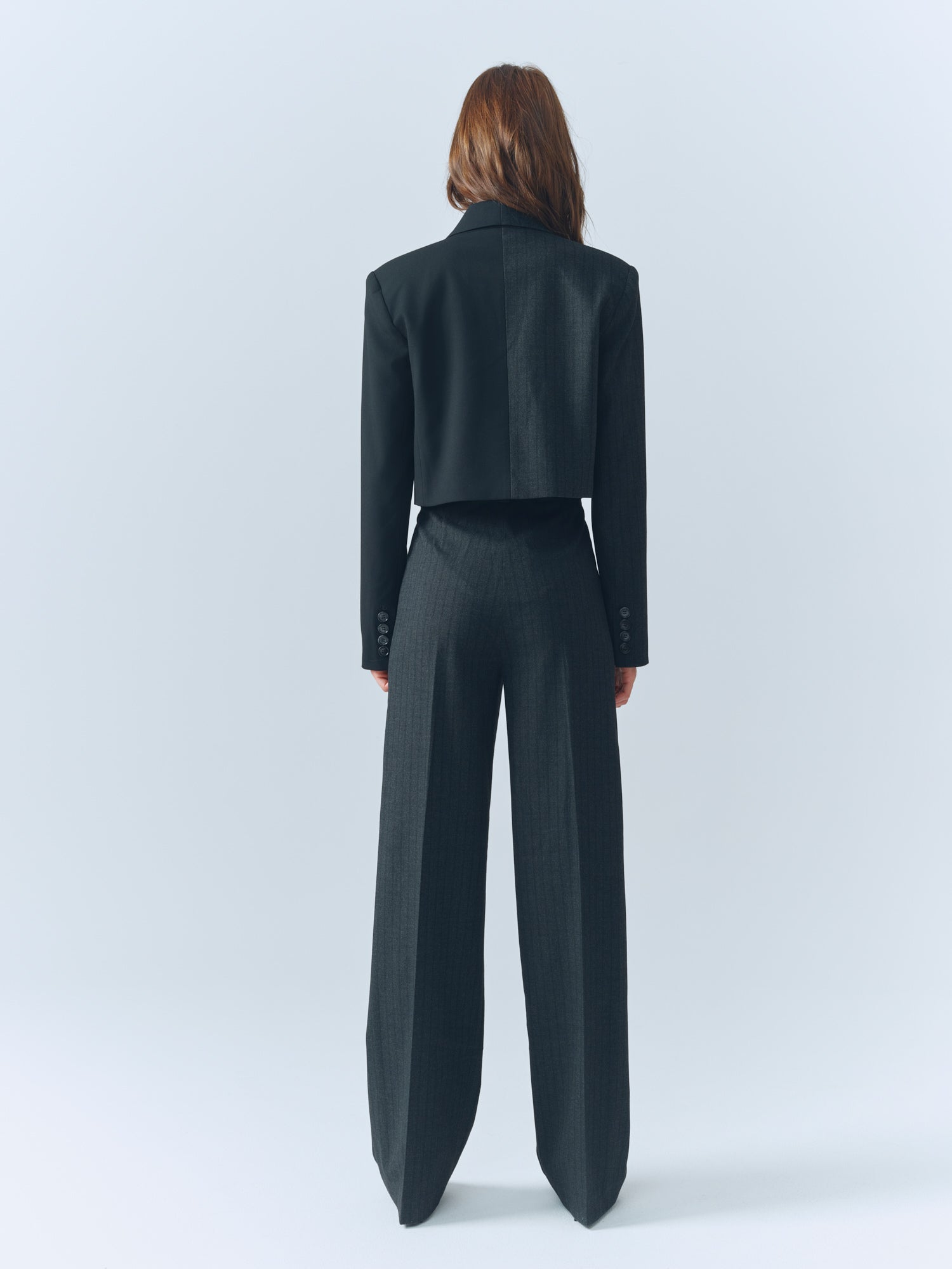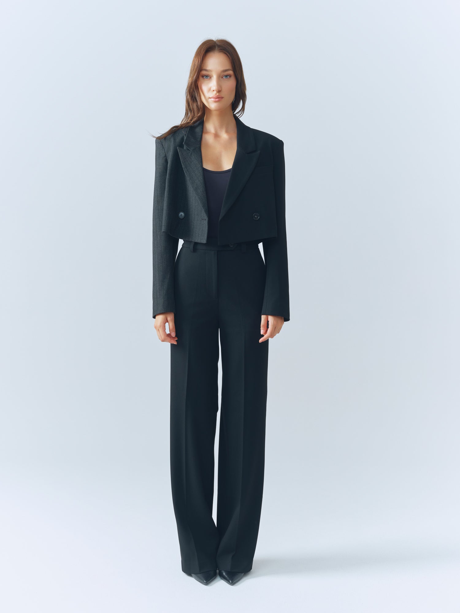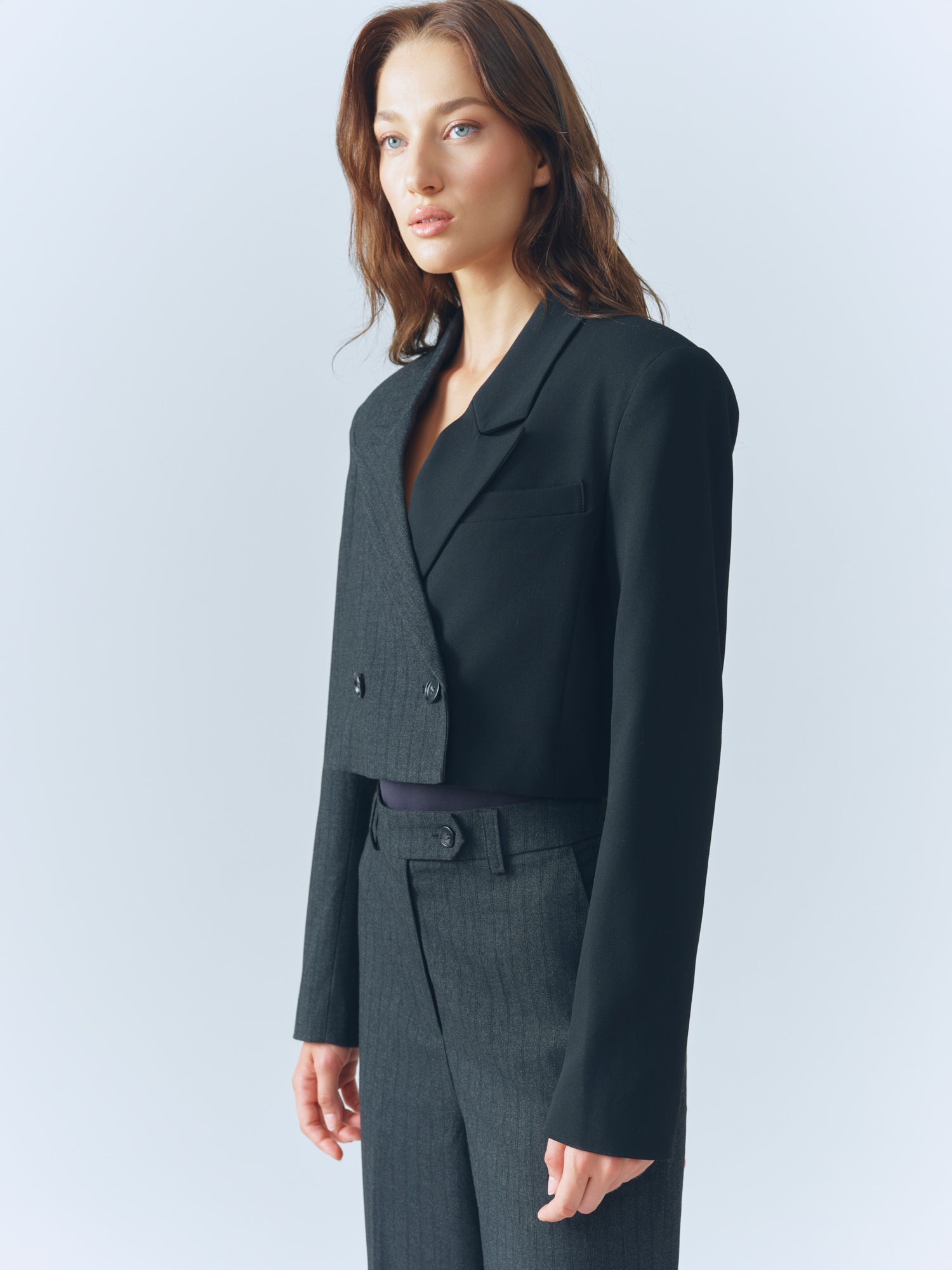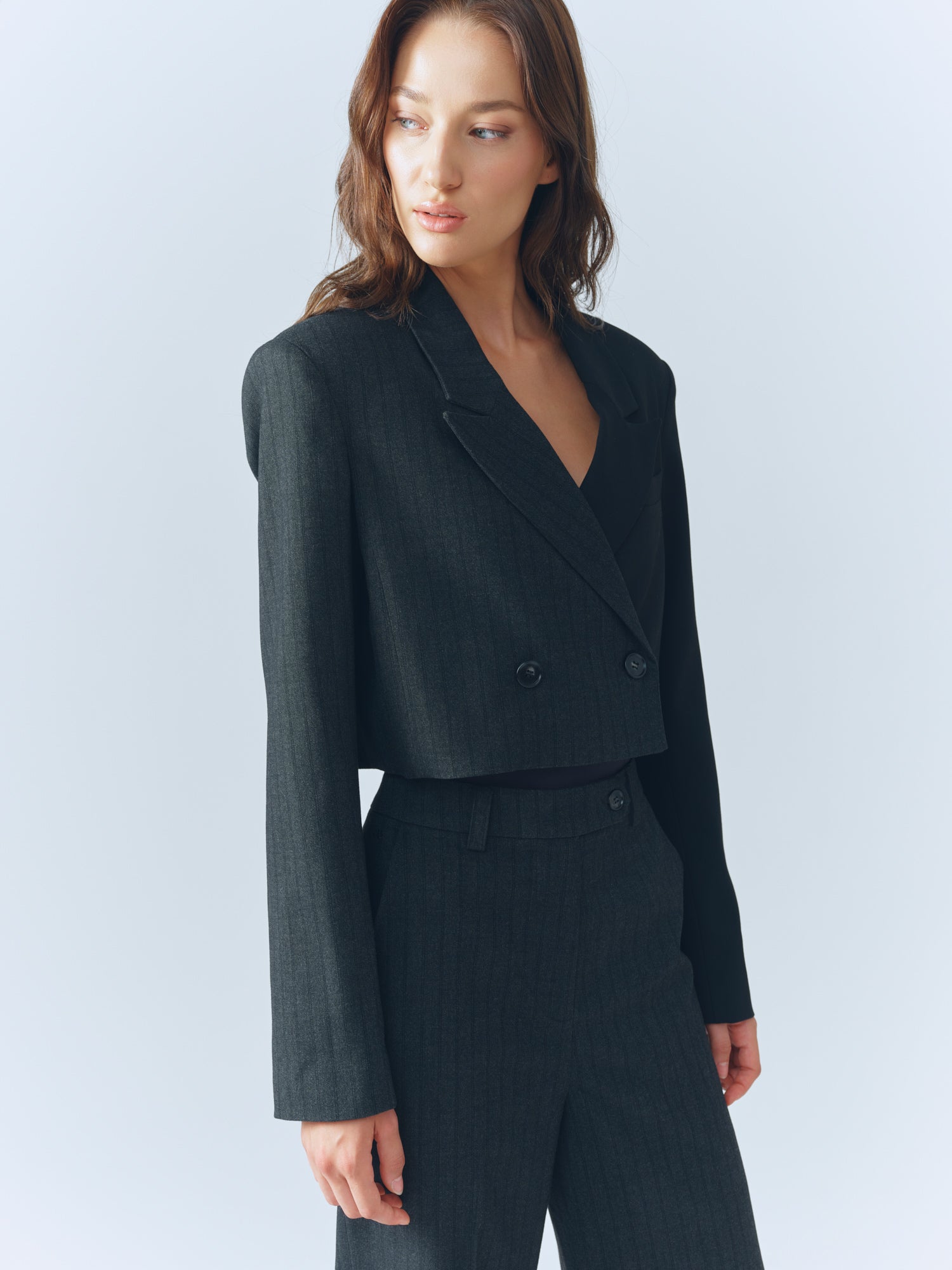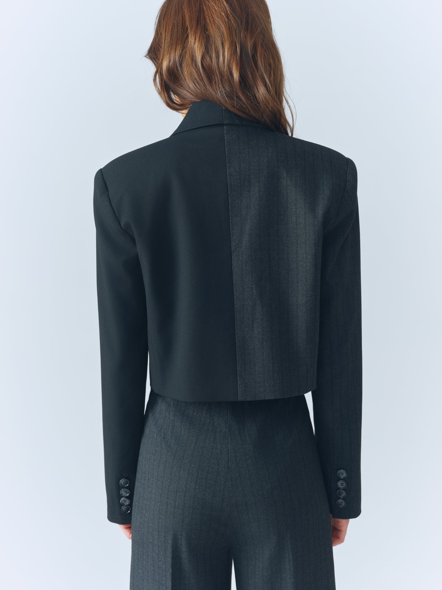 Pinstripe / Black Combo Cropped Blazer