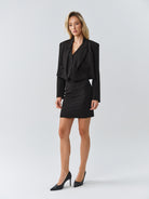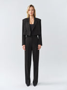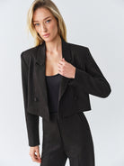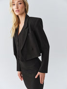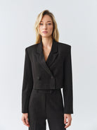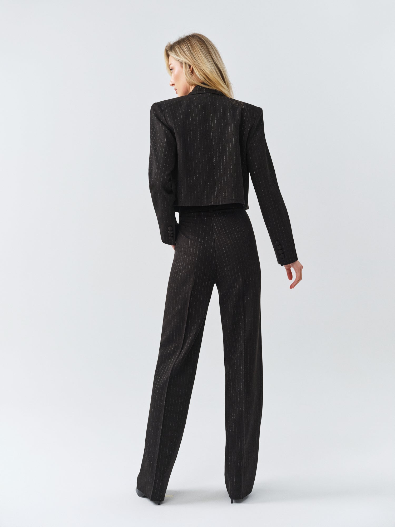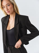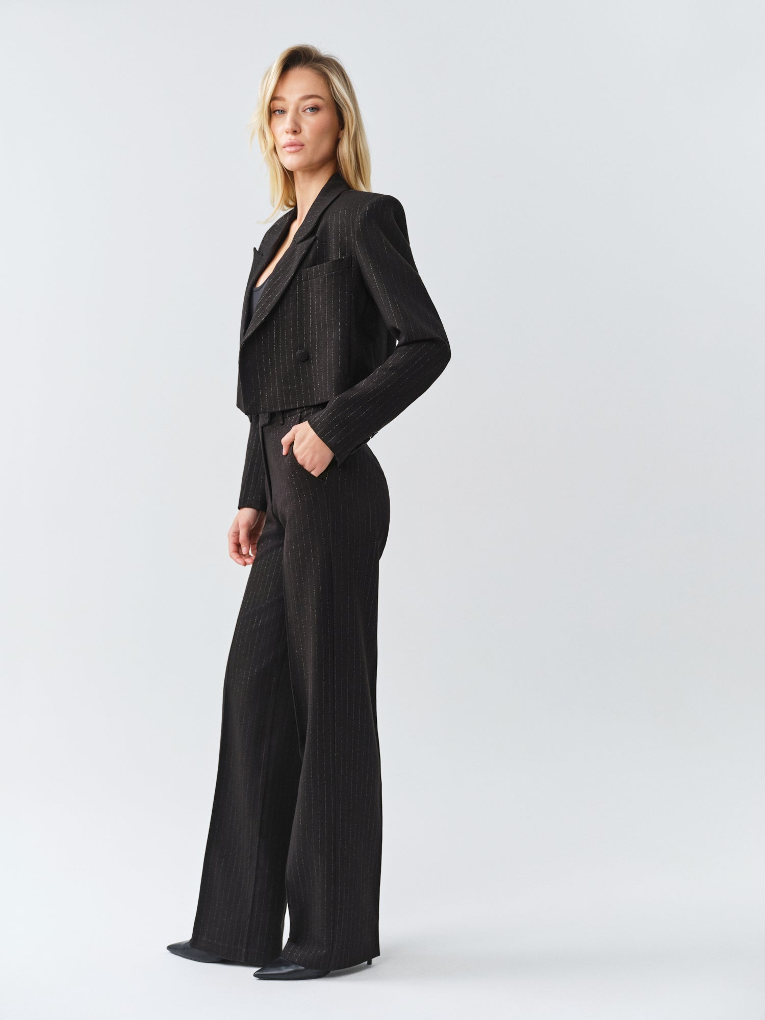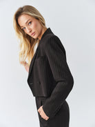 • Black Shiny Pinstripe Cropped Oversized Blazer